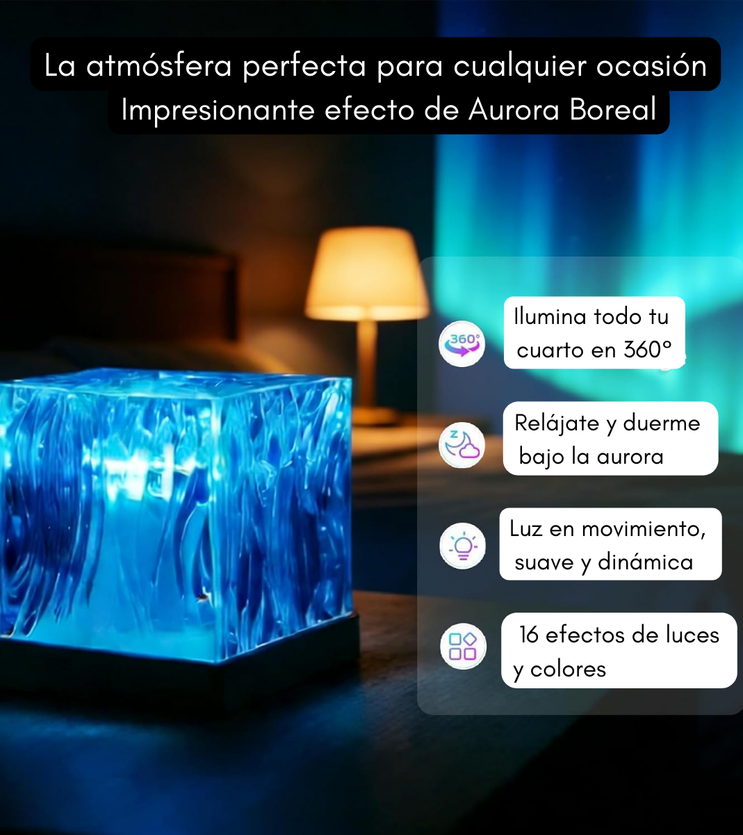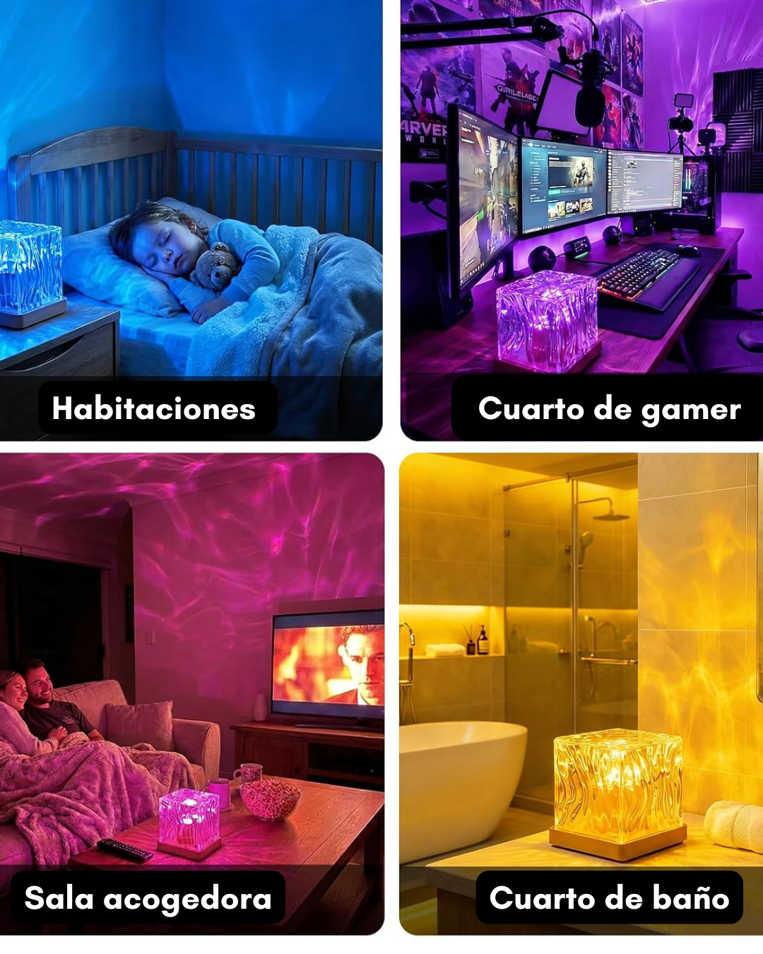 Úsalo con luces suaves para relajarte y dormir, o con colores dinámicos para reuniones de amigos y familia
